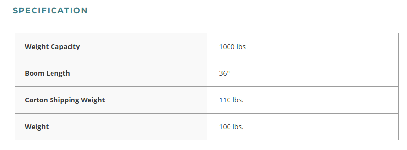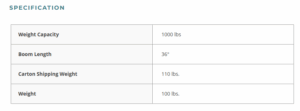 - The overhead boom swivels from 0° to 180°