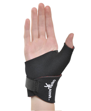 This wrap around style wrist support is very adjustable. For low level wrist support during and after healing of a traumatized wrist with a soft thumb extension for added support. Comes in 3mm Neoprene or Coolprene, black or grey.
