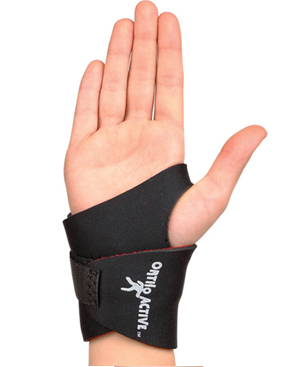 This wrap around style wrist support is very adjustable. For low level wrist support during and after healing of a traumatized wrist. Comes in 3mm Neoprene or Coolprene, black or grey.