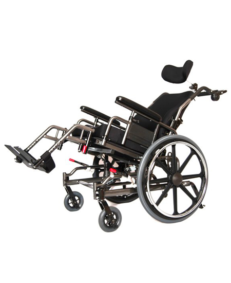 The SUPERTILT is Maple Leaf Wheelchair’s flagship 45 degree tilt, steel manual wheelchair designed for extended pressure relief with stationary users and carries great functionality with swing in, swing out footrests and adjustable stroller handle.