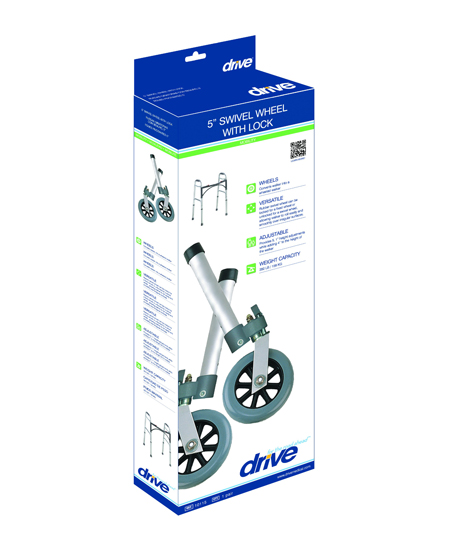 • Rubber wheels allow walker to roll easily and smoothly over irregular surfaces.